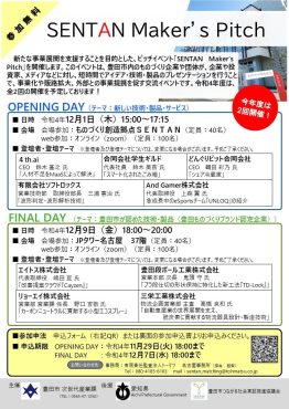 ■ 会場 会場参加:ものづくり創造拠点SENTAN(定員:40名)web参加:オンライン(zoom)(定員:100名)