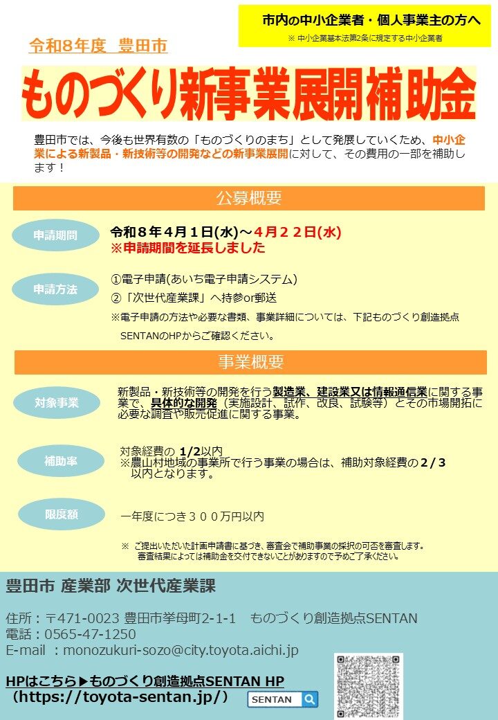 【申請期間を4/22に延長しました】豊田市ものづくり新事業展開補助金