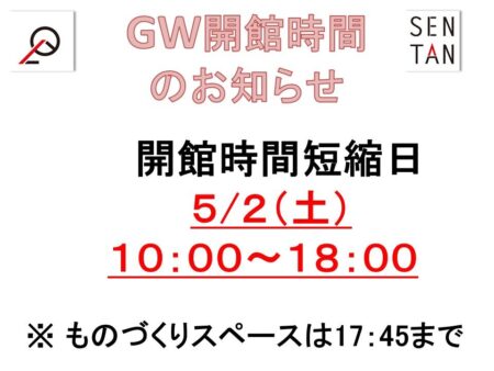 GW期間中のSENTAN開館時間のお知らせ